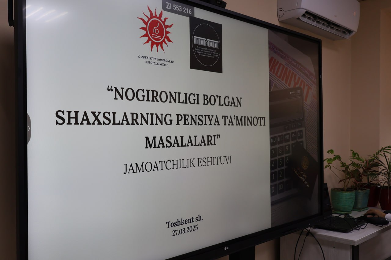 В офисе Ассоциации инвалидов Узбекистана состоялось общественное слушание по вопросам пенсионного обеспечения лиц с инвалидностью, основываясь на законах «Социальное партнерство» и «Общественный контроль», направленных на укрепление сотрудничества между государством и гражданским обществом. Мероприятие прошло в гибридном формате — офлайн и онлайн, что позволило привлечь больше участников и охватить тему более широко.